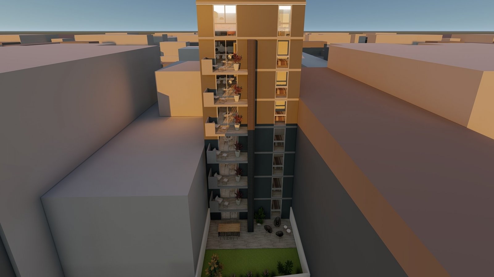 El complejo, cuenta con Seguridad virtual 24hs, Piscina, Parrillas, Gran Sum.