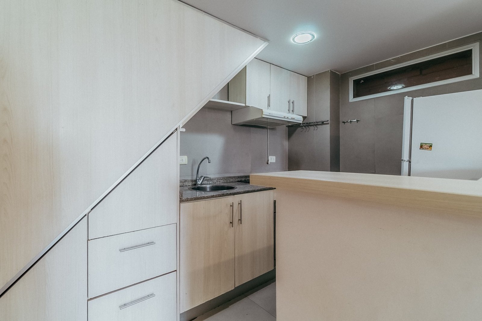 - Cocina integrada, completa con muebles bajo mesada. Artefacto de cocina todo eléctrico. Espacio para lavavajilla.
